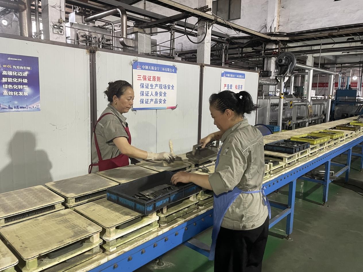 高温季节,金宁三环FP 分厂烧成车间的热浪像张滚烫的网,上午九点厂房温度超过了40度,员工们的工作服后背和肩头,汗渍大片晕染,紧贴着身体,额头上的汗珠沿着眉骨滑落,流入眼中,他们只能随手用袖子粗略擦拭,又低头专注于手头的工作。他们紧握工具,动作熟练稳健,任由汗水一次次浸透衣衫,瞬间又被体温烘干至半干,但他们依然在炙热的高温中,把每一份执着揉进那些重复的操作之中。
